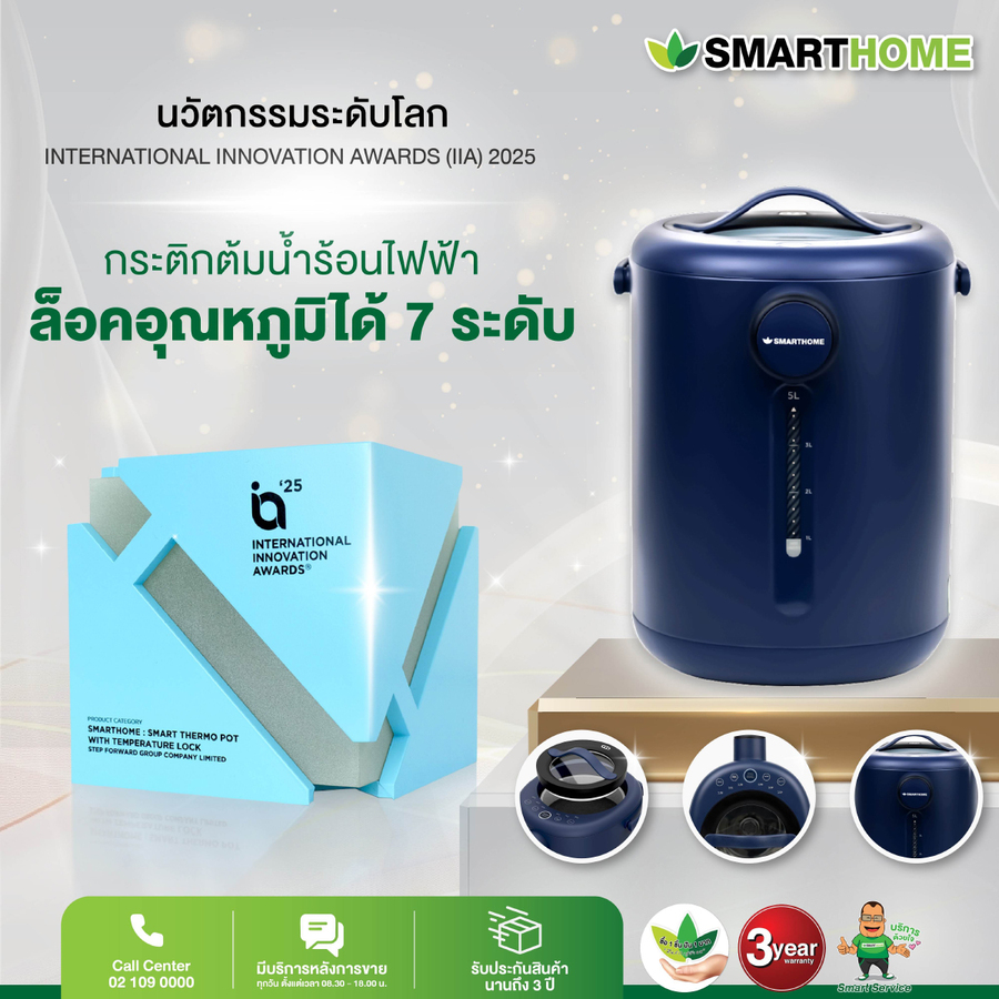 นายวิศรุต ทวีรุจจนะ กรรมการผู้จัดการ บริษัท สเต็ป ฟอร์เวิร์ด กรุ๊ป จำกัด ผู้จัดจำหน่ายแบรนด์เครื่องใช้ไฟฟ้าชั้นนำของไทย SMARTHOME (สมาร์ทโฮม) เข้ารับรางวัล International Innovation Awards 2025 สาขา Product Category: Smart Thermo Pot with Temperature Lock จากผลิตภัณฑ์ กระติกน้ำร้อนอัจฉริยะ ความจุ 5 ลิตร รุ่น SM-TP157 ซึ่งโดดเด่นด้วยฟังก์ชันล็อกอุณหภูมิ เพื่อความปลอดภัยและตอบโจทย์การใช้งานจริงในชีวิตประจำวัน
