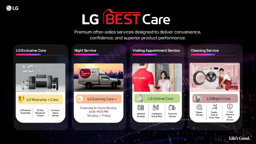 ความมุ่งมั่นในการปฏิรูปธุรกิจครั้งนี้ตั้งอยู่บนรากฐานที่มั่นคง โดยในปี 2568 ที่ผ่านมา ซึ่งเป็นปีที่ 37 ของแอลจีในประเทศไทย บริษัทมีผลประกอบการเติบโตขึ้นกว่า 7% สะท้อนถึงความเชื่อมั่นที่ที่ผู้บริโภคชาวไทยมีต่อแอลจีในฐานะผู้นำนวัตกรรมเครื่องใช้ไฟฟ้าสัญชาติเกาหลีระดับโลกที่น่าเชื่อถือเสมอมา และเพื่อต่อยอดความไว้วางใจพร้อมมอบประสบการณ์ที่สมบูรณ์แบบ แอลจีจึงเตรียมยกระดับบริการหลังการขาย ‘LG Best Care’ ให้ครอบคลุมยิ่งขึ้น ทั้งการดูแลที่ผู้บริโภคสามารถเข้าถึงทุกความต้องการได้ทุกเวลา บริการที่ตรงต่อเวลา และการทำความสะอาดโดยผู้เชี่ยวชาญ เพื่อรักษาประสิทธิภาพสูงสุดของผลิตภัณฑ์ ซึ่งเป็นอีกหนึ่งปัจจัยสำคัญในการสร้างความแตกต่างและมอบความอุ่นใจให้แก่ผู้ใช้งานในระยะยาว